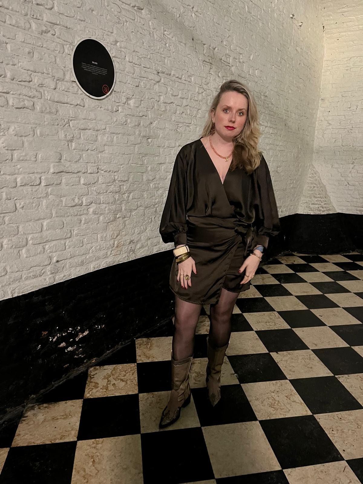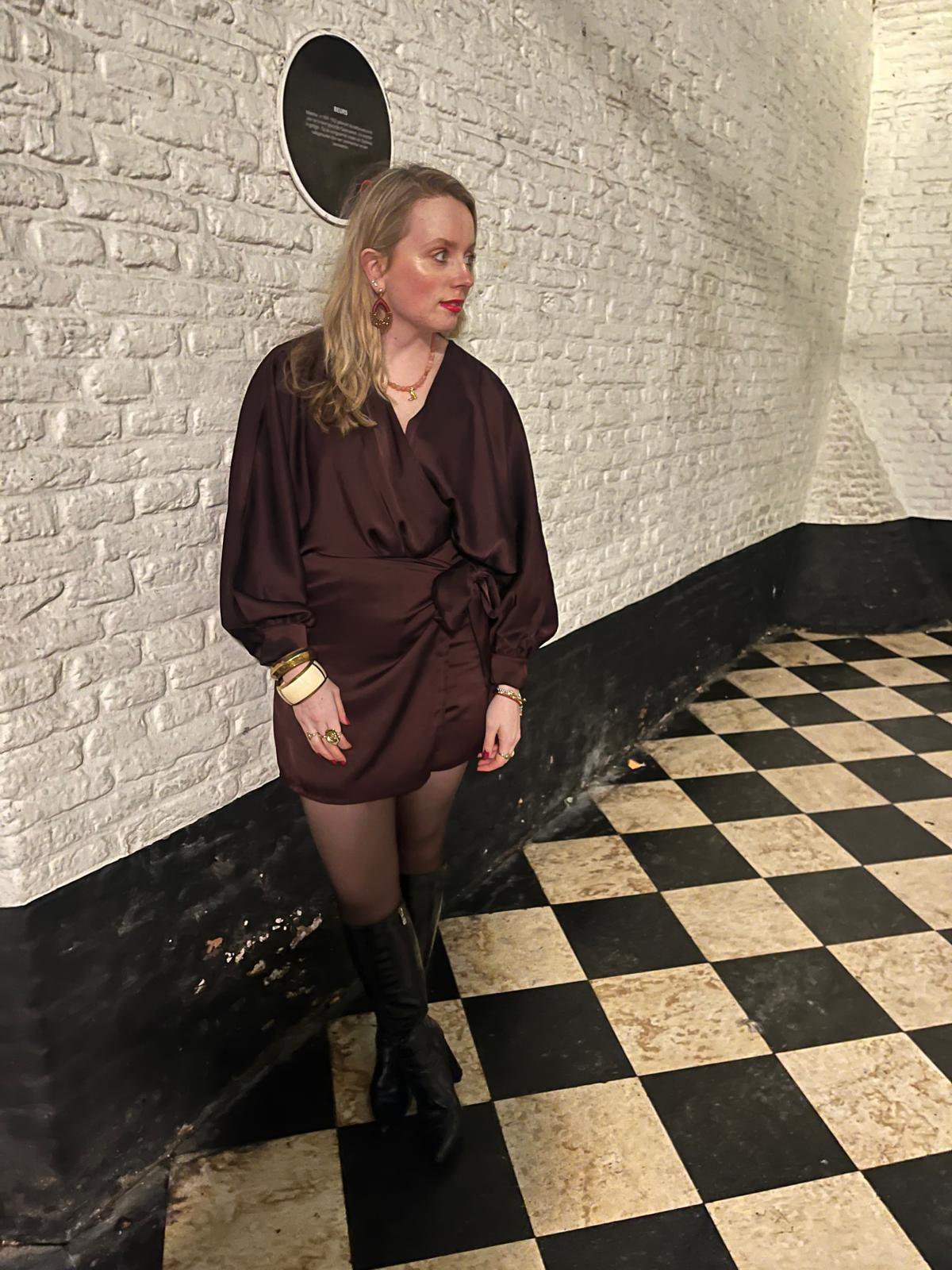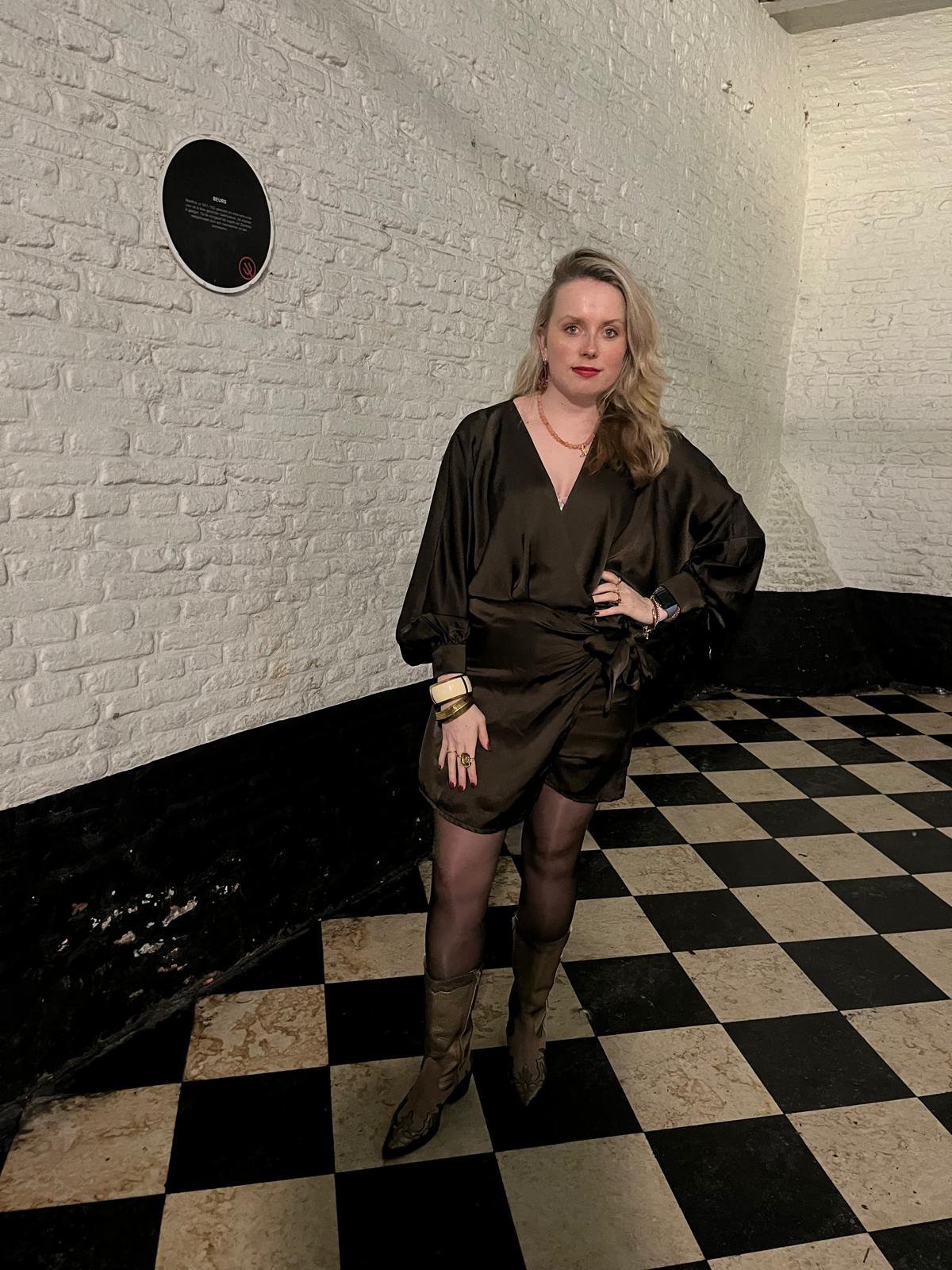 Satijnen playsuite met elastische band in de taille.