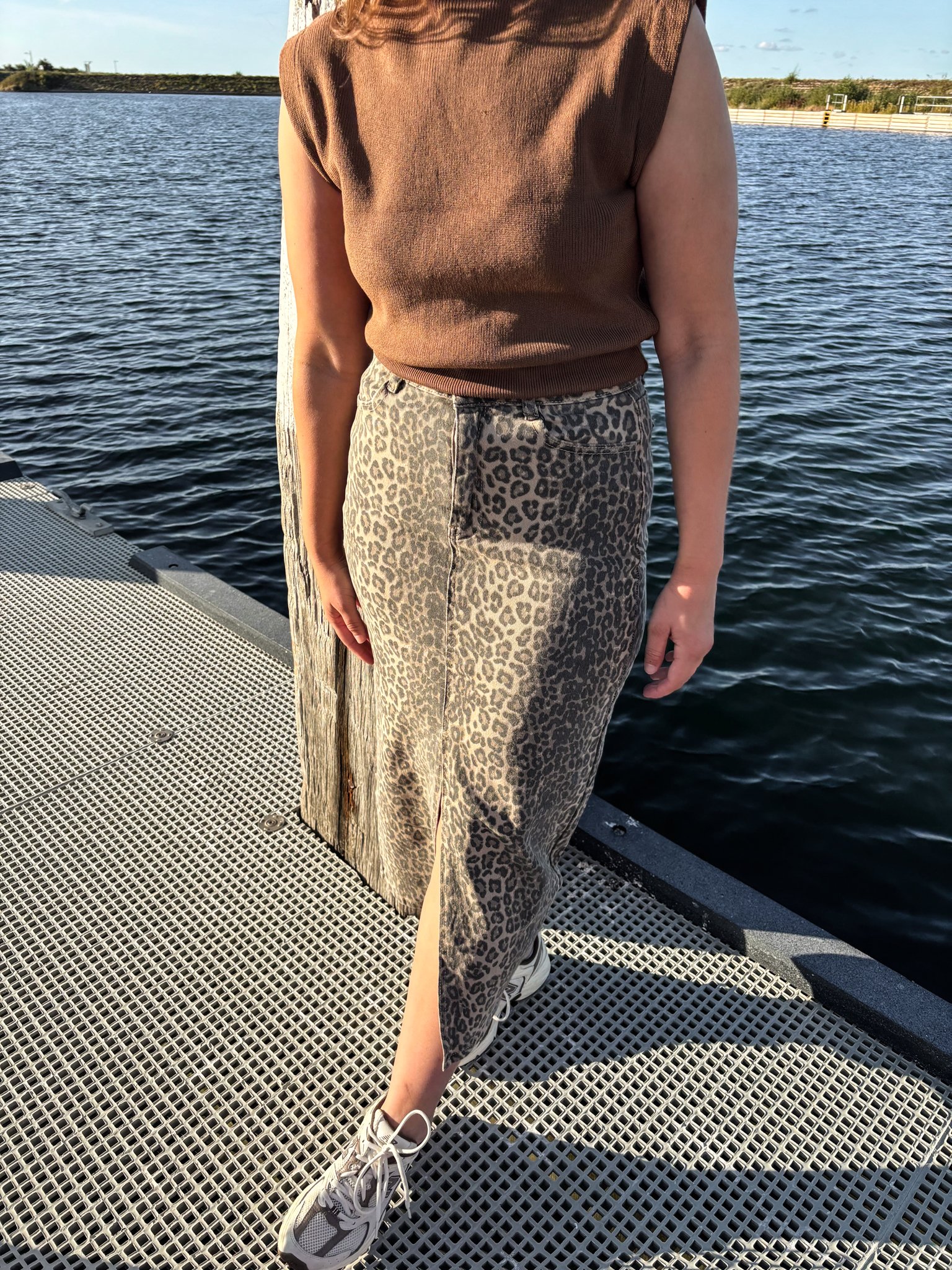 Deze midi spijkerrok met leopard print combineert stoer denim met een trendy dierenprint. Het rechte model valt tot halverwege de kuit en sluit mooi aan voor een vrouwelijke look. Verkrijgbaar in de maten XS, S, M, L en XL, zodat je altijd de perfecte fit vindt.